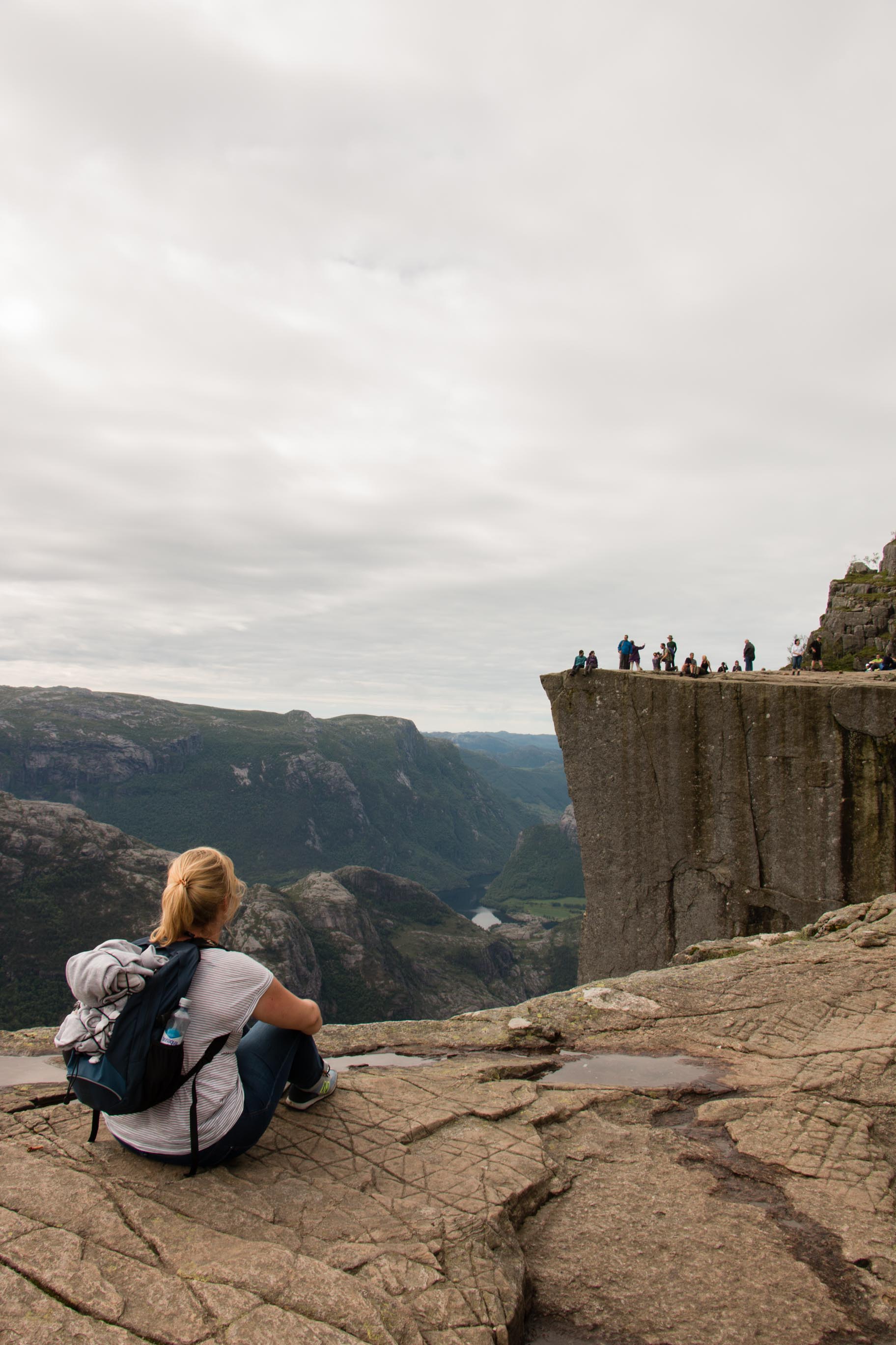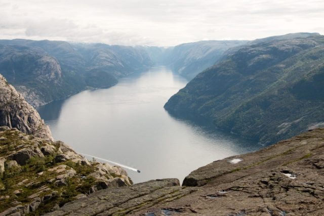 Na even op de preikestolen genoten te hebben dalen we weer af. Ook naar beneden is het opletten. De stenen zijn op sommige plekken behoorlijk glibberig en met het afdalen is het nog makkelijker wegglijden. Als we bijna beneden zijn checkt Stijn z’n horloge. Hij merkt op dat op een bepaald moment zijn hartslag 180 is geweest… Nou zegt hij geen hoogtevrees te hebben maar wellicht zal hij deze hartslag gehaald hebben toen hij over het randje keek, haha!
