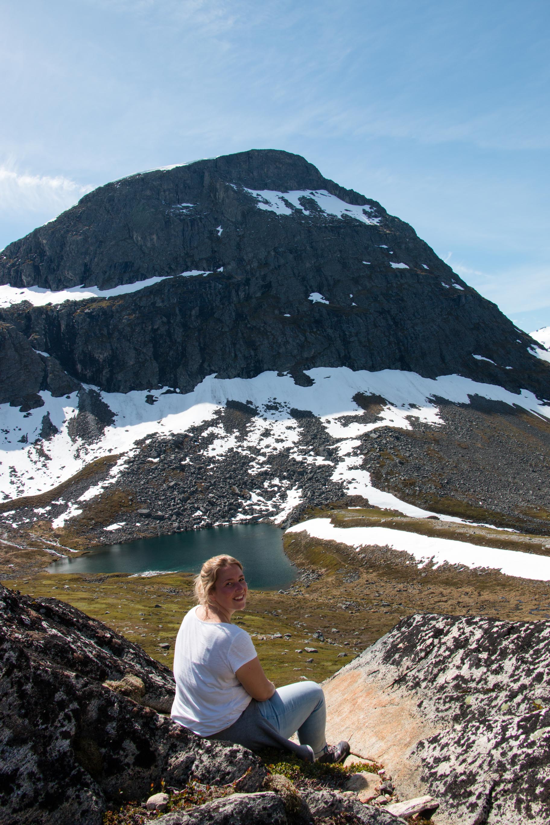Een stukje voor de Trollstigen hebben we nog een mooie wandeling gemaakt door de bergen die we van ver weg al aan het bewonderen waren. Na anderhalf uur wandelen hebben we op het topje van een rots geluncht en zijn daarna weer het stuk naar beneden gelopen. De wandeling ging nog verder naar de top van de berg maar na de hike van eergisteren merken we dat we onze benen een klein beetje moeten sparen. Ondanks de verkorte route was het toch een wandeling van 3 uur en hebben we weer geweldige uitzichten gezien!